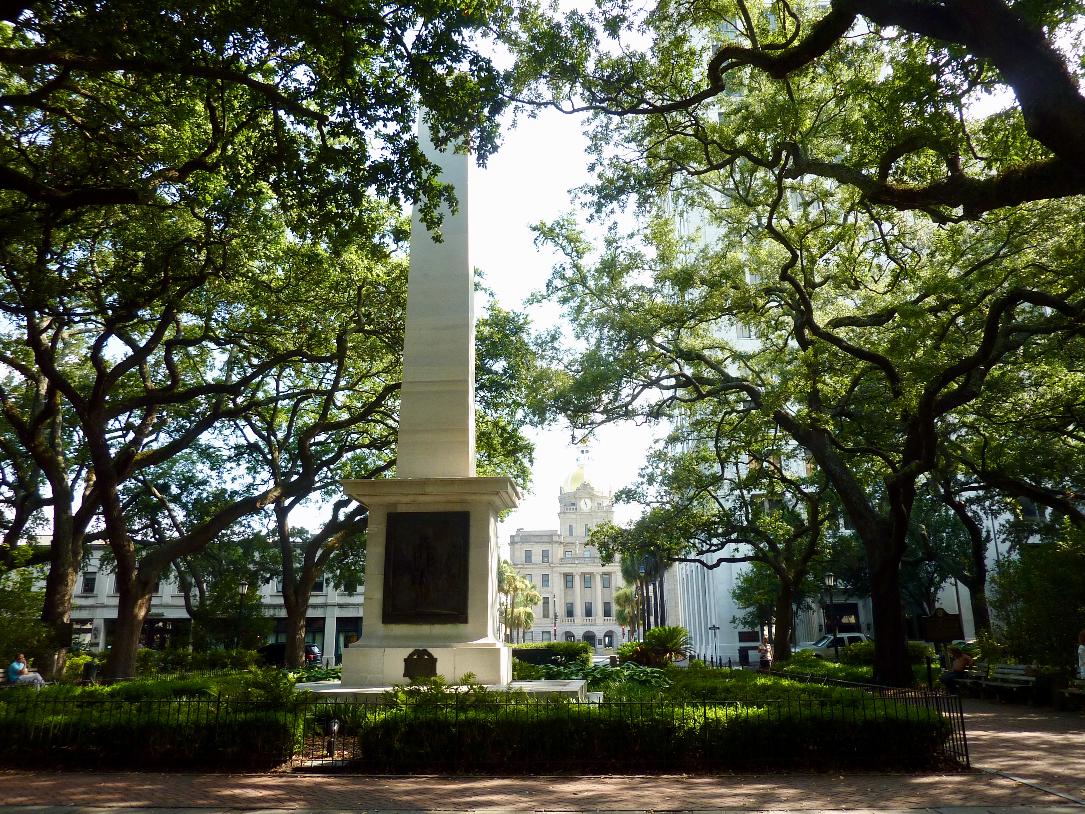 live oaks and leopard plants in Savannah’s squares