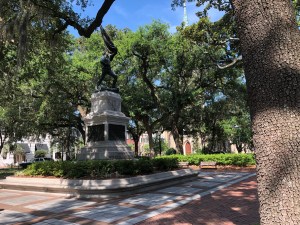 live oaks and leopard plants in Savannah’s squares