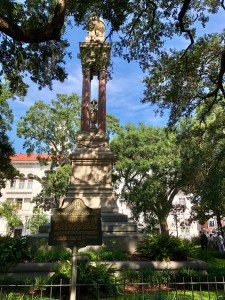 live oaks and leopard plants in Savannah’s squares