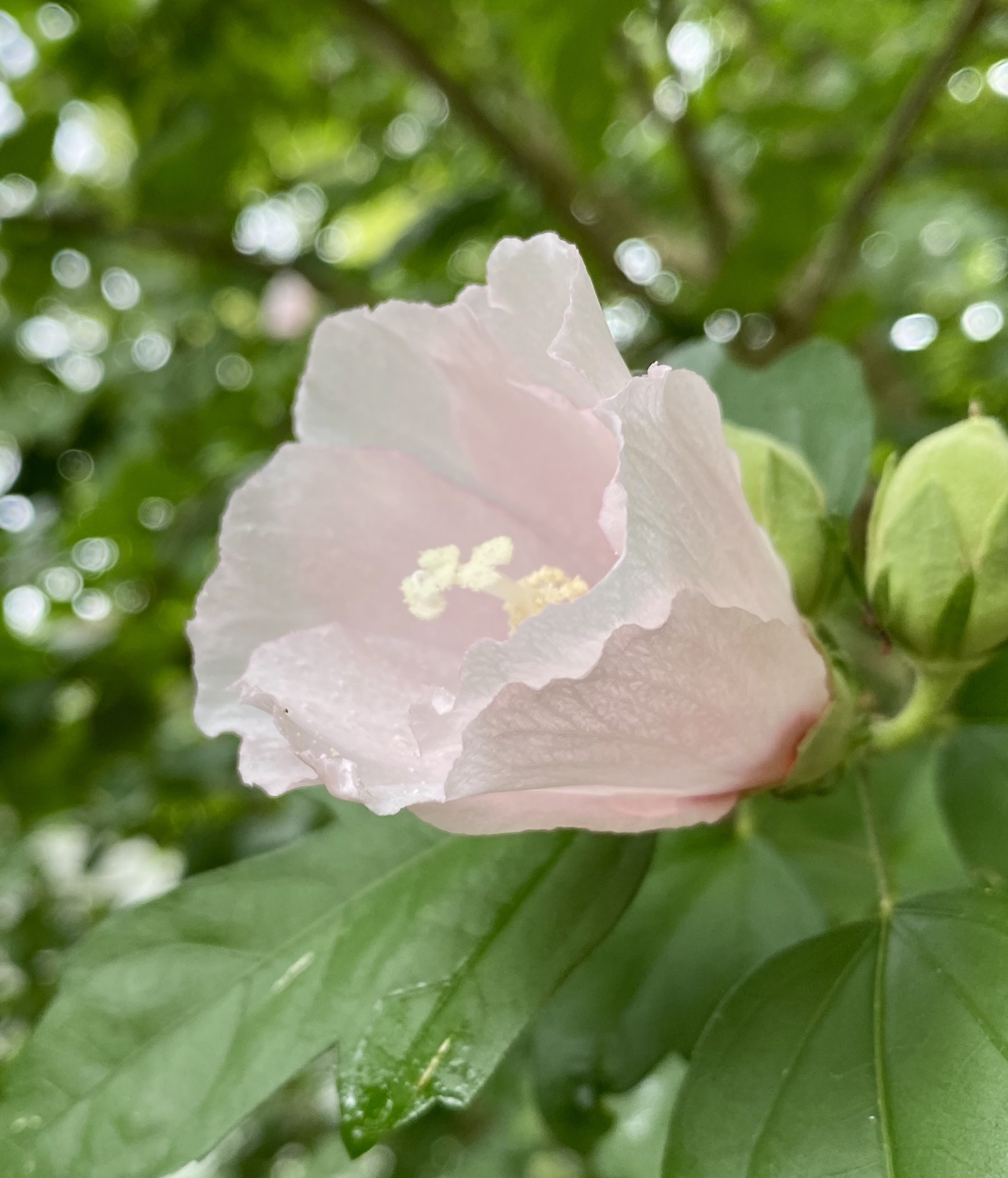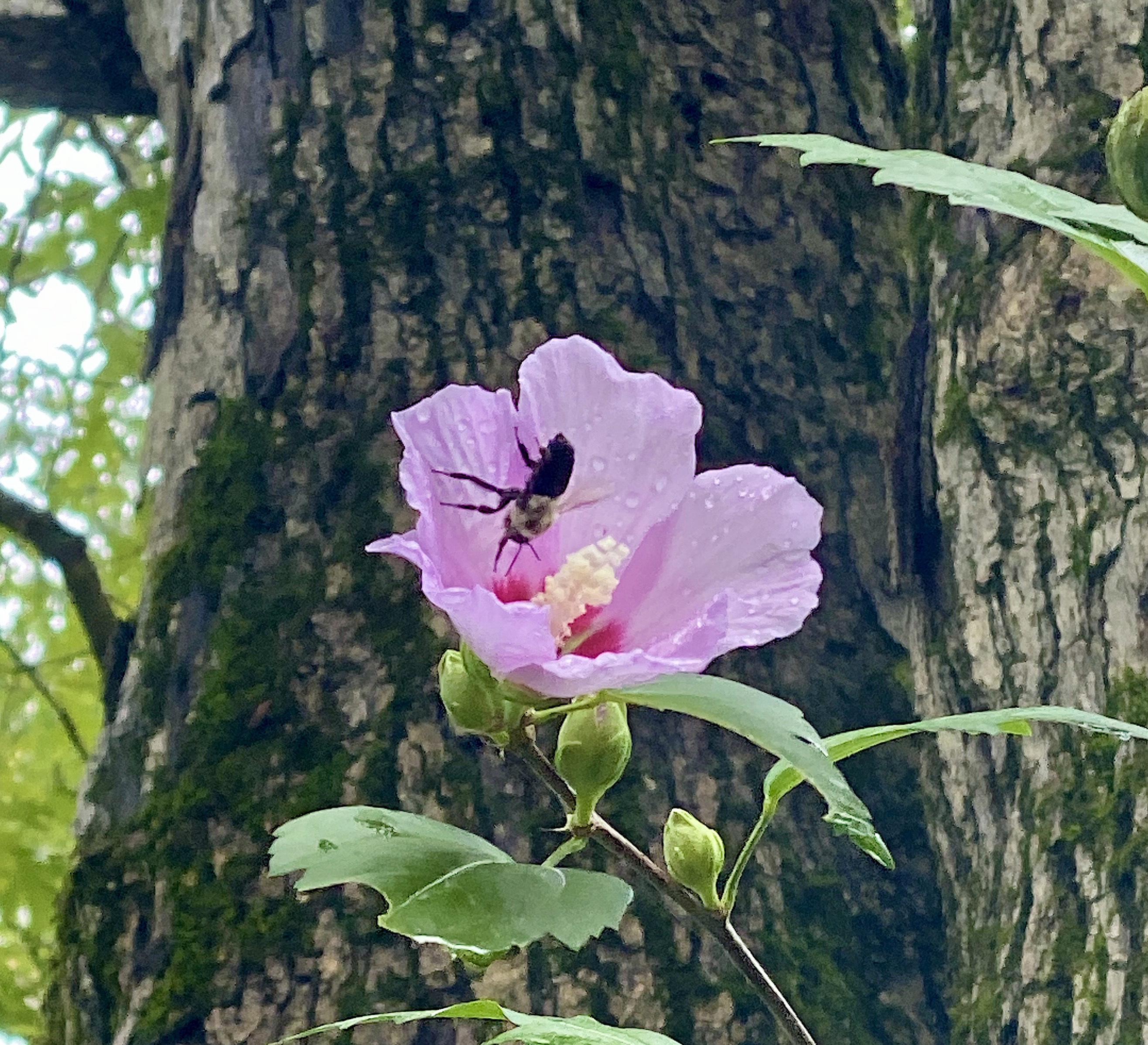 1. This week’s six begin with the flower in the featured image, Althea, or Rose of Sharon, or Hibiscus syriacus, whichever name you might prefer. I’m sure I have documented these blooms–even with bees–before, but this time I want to note the great variety of color of the flowers. There are many of these shrubs in the garden, most of them having grown up where they will, and sporting unpredictable flower color and veining. Below is a gallery of those colors ranging from purple to light pink to white. My favorite is the light pink that is almost peach colored in the sunlight. Regardless of their shade, they are are bee and butterfly favorites.