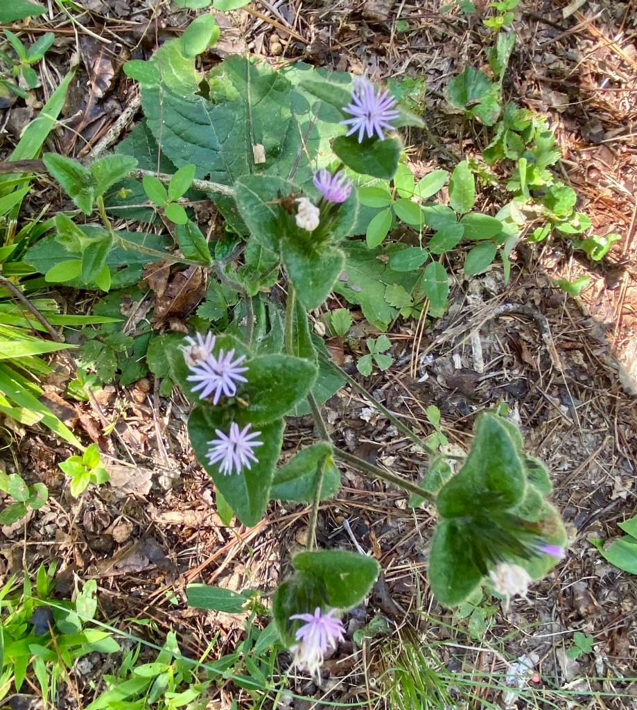 2. The next two are wildflowers. One is a favorite. One is a annoyance. The annoyance first. Elophantopus tomentosus is a Southeastern native and easily recognizable by its large basal leaves, which I suppose inspired one of its common names, Elephant’s Foot, or Wooly Elephant’s Foot in the Alabama Plant Atlas. Its other common name is Devil’s Grandmother, and I have no idea how it got that name. The blue aster-like flowers are rather attractive but diminutive and short-lived.