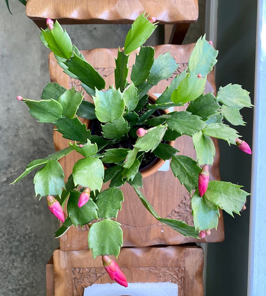 Forgot to say that my Christmas cactus is next to some planters of forced paperwhites in pebbles and water, so I think there’s probably enough humidity in the air…And it gets light from the southern window, but is about five feet away so it’s not getting too much sun, I don’t think.