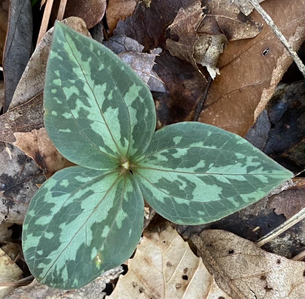 The leaves on the trillium are beautifully mottled.