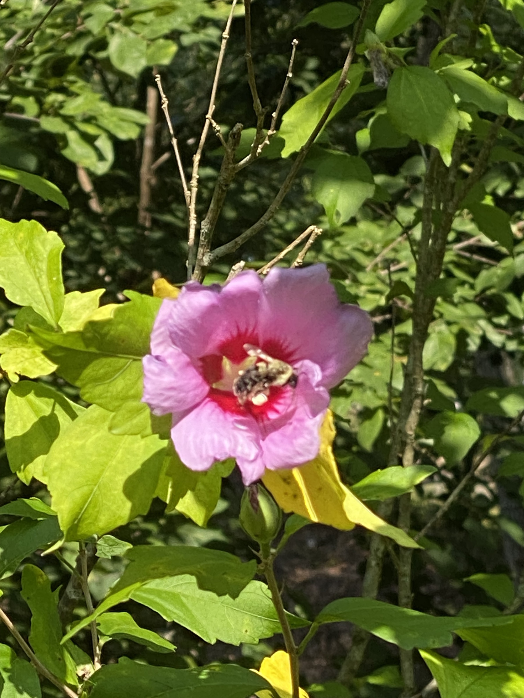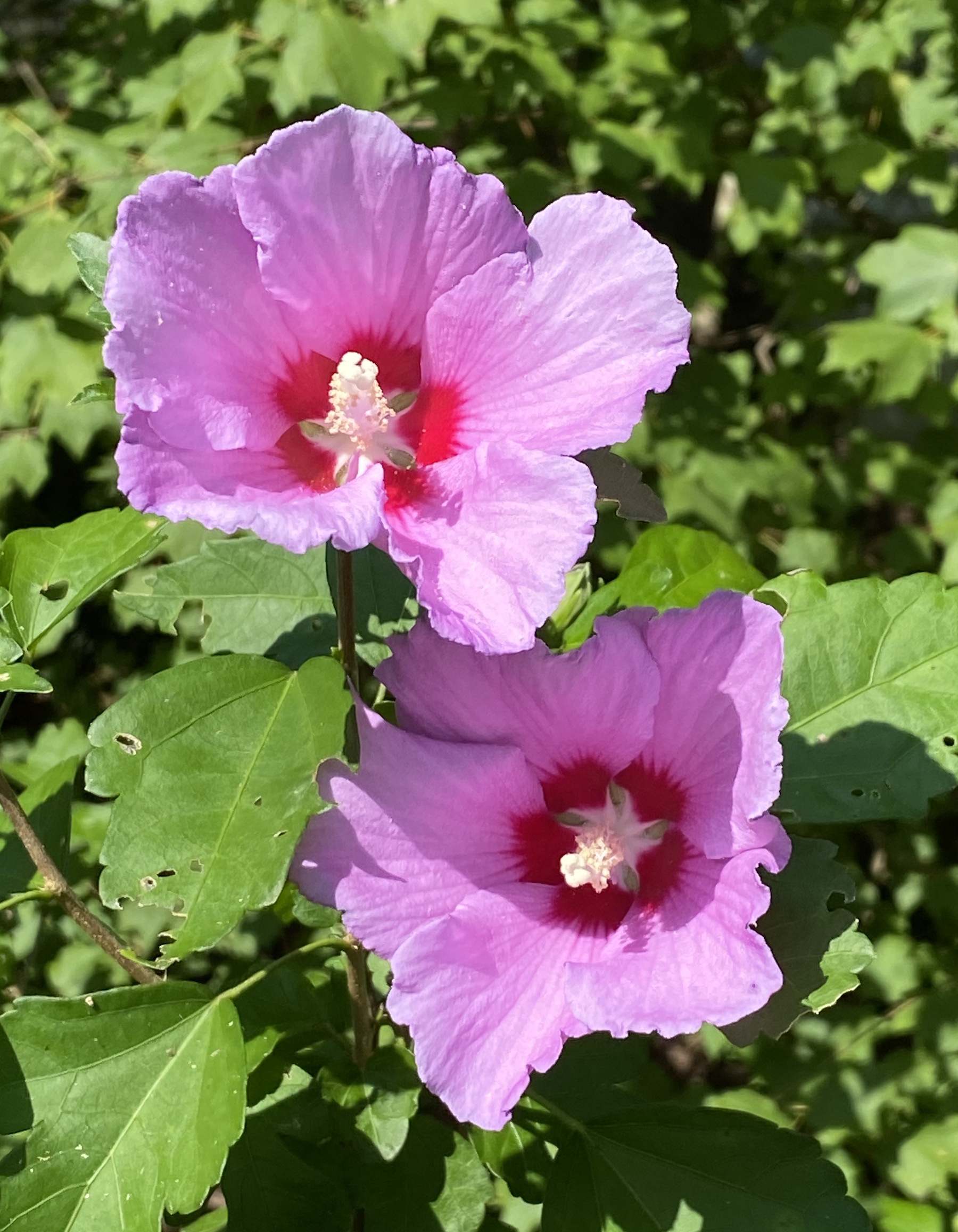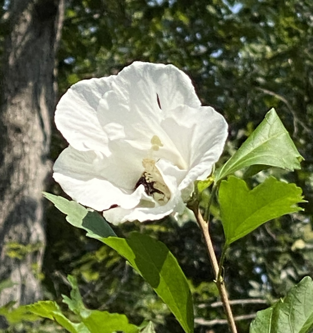 4. My next entry is a non-native, but given its popularity in the American Southeast, that might seem a little surprising. Originating is China, Althea, Rose of Sharon, Common Hibiscus (Hibiscus syriacus ) are all names for this deciduous shrub that propagates itself with annoying ease. Throughout the spring and summer, I pull up and discard one to two inch Rose of Sharon seedlings. Still, I maintain numerous bushes. A few might even be considered small trees. The flowers are attractive to the eye and inviting to the bees and hummingbirds; moreover, their colors come in a rich and diverse palette of purple, pinks, and white.