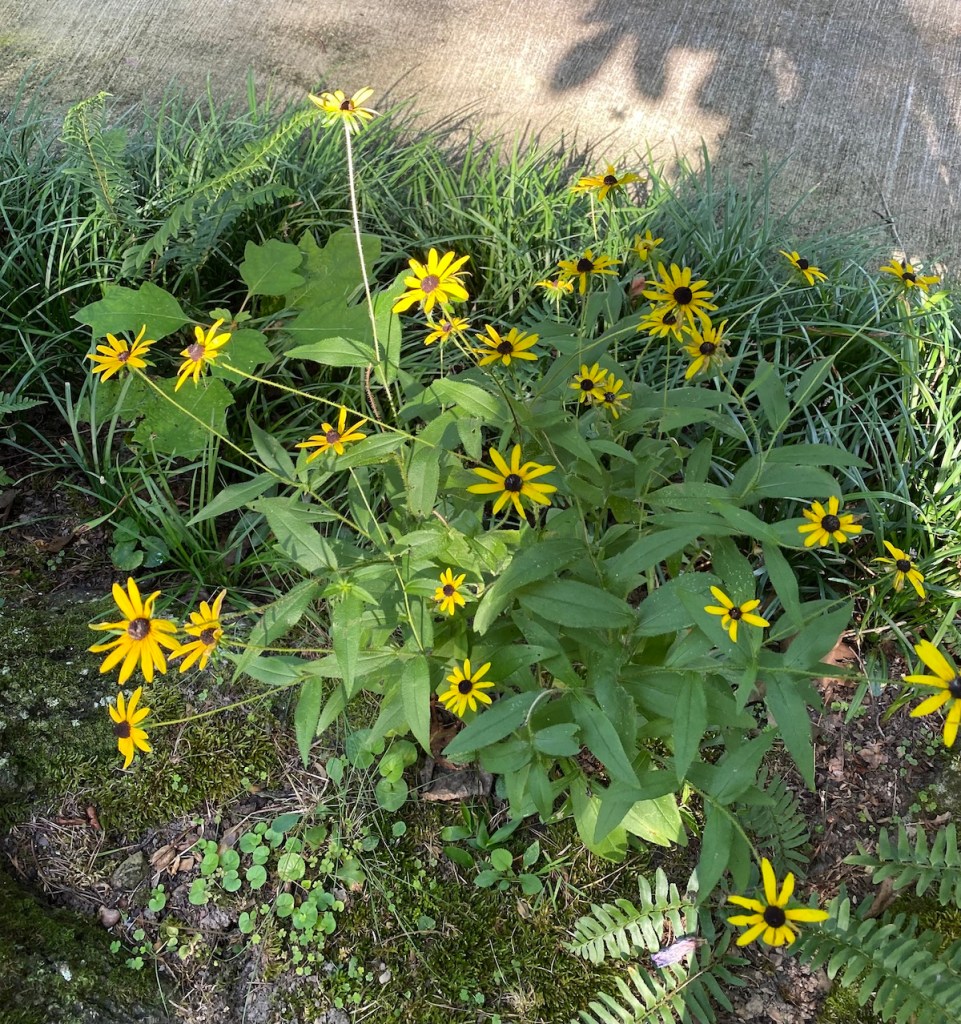 2. Woodland sunflowers (Helianthus divaricatus) are just beginning to bloom as well. Native herbaceous perennials, they are tall and vigorous growers. I know I should create a “plan” for them, but to date I’ve let them grow rather undisciplined in the sunny upper area of the wooded part of the garden. They are really a bit of a chaotic mess; nonetheless, they are a blooming mess.