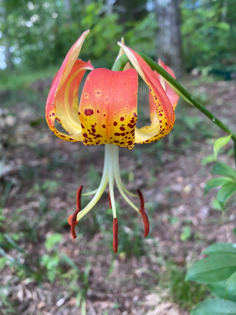 1. There are a few things to celebrate about the garden this week, though. First, one of my favorite wild flowers is in bloom. The Southeastern native Carolina lily (Lilium michauxii) is doing well in various patches. Sometime, the Carolina lily, which has one or occasionally two flowers on a single stem, is mistaken for the Turk’s Cap lily that presents multiple flowers in a chandelier-like structure.