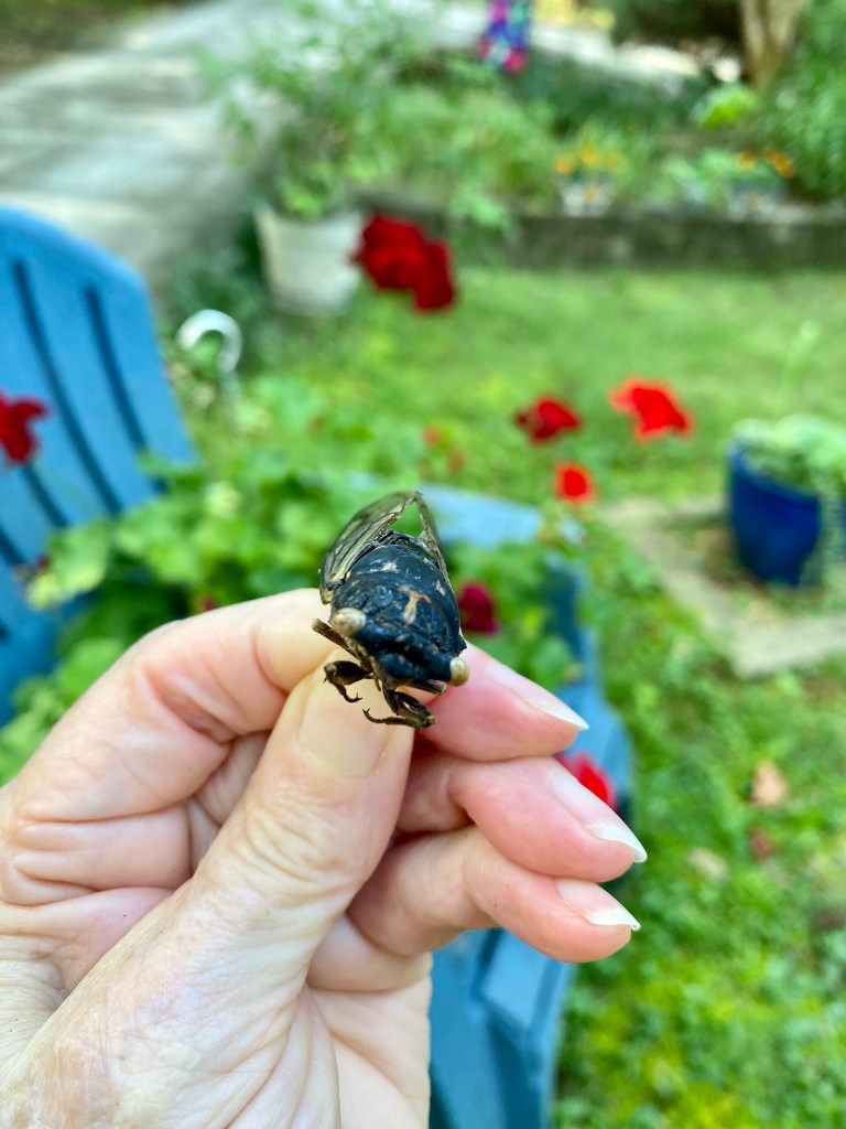 6. The final photo for today is of another non-plant. In this case, an insect, a cicada—the voice of the summer night. And it is final. Found among the bits and pieces of leaves and twigs on the driveway this morning, he seemed a fitting icon for the weather—a “hot bug,” as my grandmother called them, fallen victim to the heat.