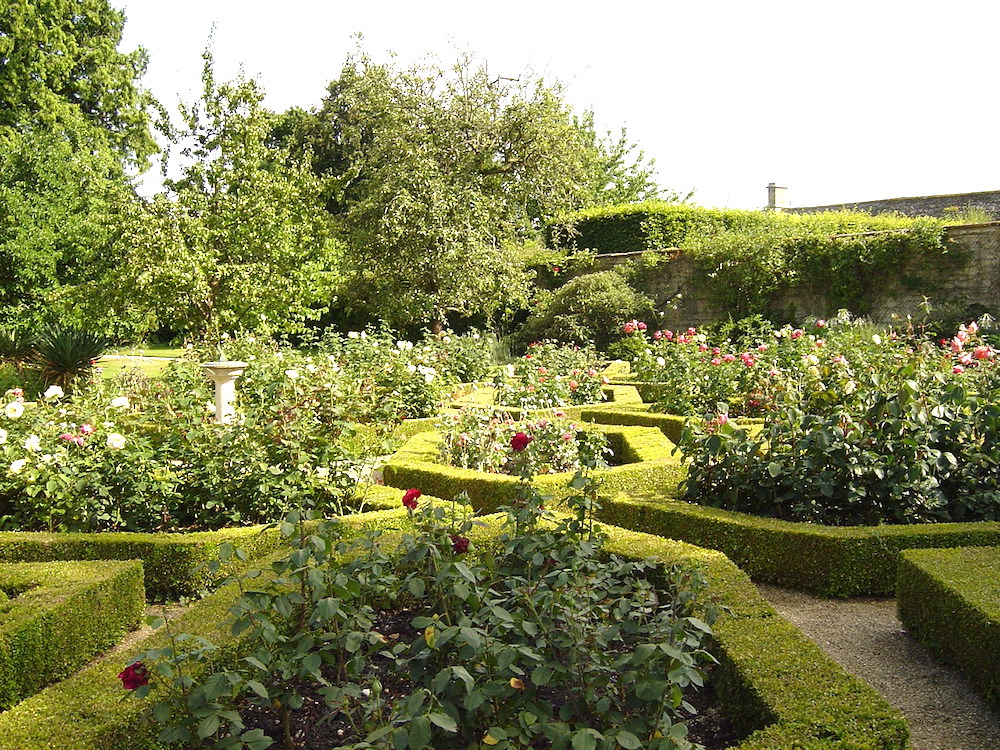Seventeeth-century gardens in England followed the Dutch and French Baroque styles of elaborate symmetrical, geometric designs, which we can illustrate by an early Rousham rose parterre and a 19th-century Oxfordshire Ladies’ garden.