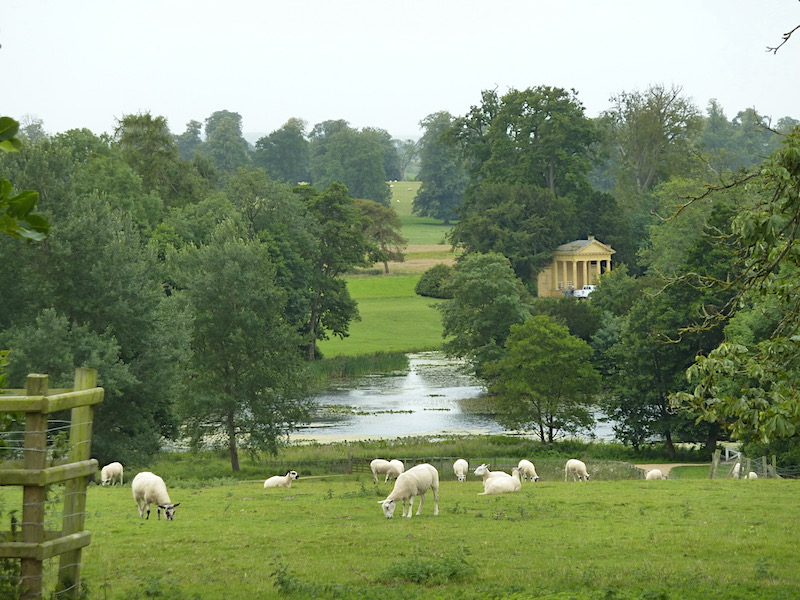 Architect William Kent redesigned garden features at Rousham (1737-1744) to eliminate straight lines (he is to have said that “nature abhors a straight line”) and to focus on picturesque views. He also worked at Stowe, creating various architectural features in the Palladian style he favored.