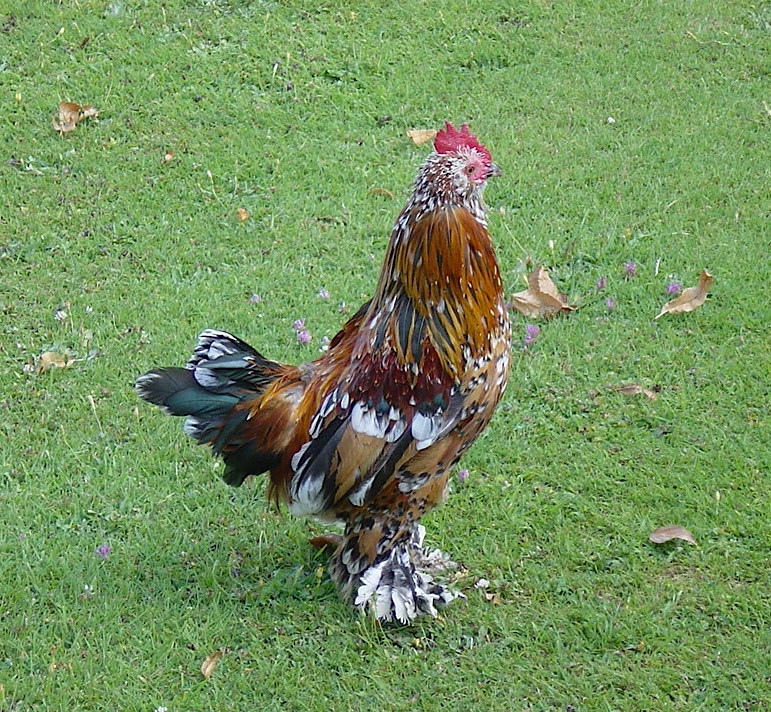I close these notes with a photo of a Mille Fleur Barbu d’Uccle Bantam. These stunning roosters have a tradition of roaming freely on the side of the front lawn at Rousham. I first saw them nearly 20 years ago in 2006.