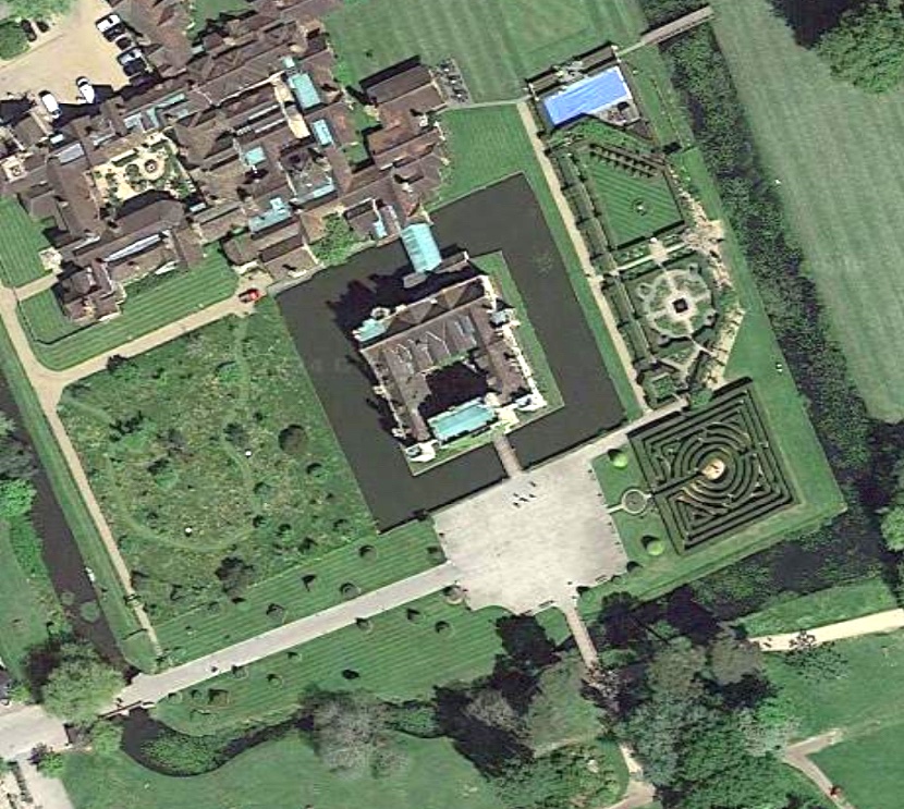 First, a few things to look for at Hever, built in 1383. The castle and grounds comprise 125 acres. Below is an aerial view of Hever’s central area.