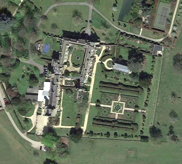 I do have recent photos of Sudeley Castle gardens. I’ll begin with an aerial view, though. The gardens we will be touring are essentially on the right side of the photo.