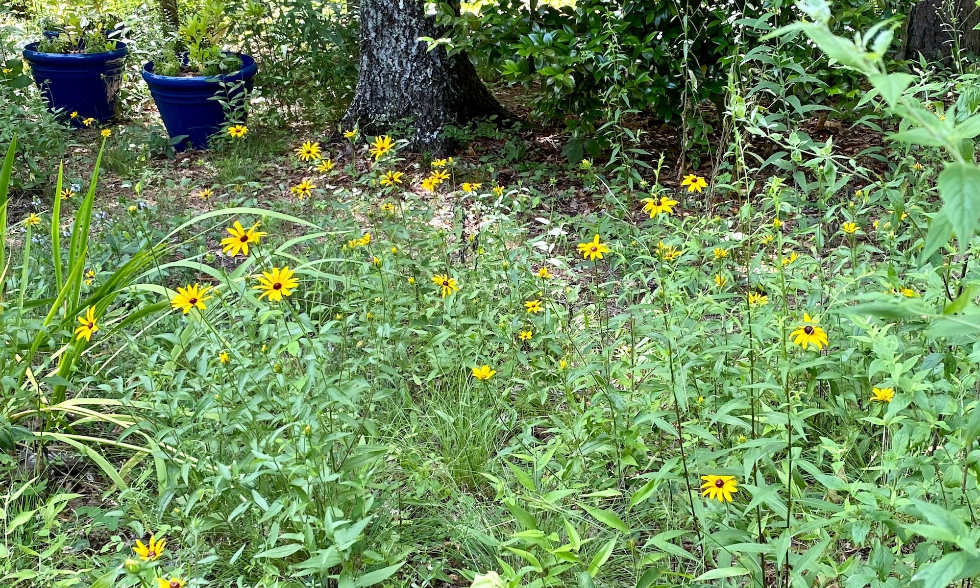 Black-eyed Susans head up this set of six on Saturday entries in part because I especially like them--in fact, rather consider them name sakes. They bloom in mid-June right around my birthday, and I am a Susan. But they also signal a shift in my work routine in the wooded area of the garden. Until …